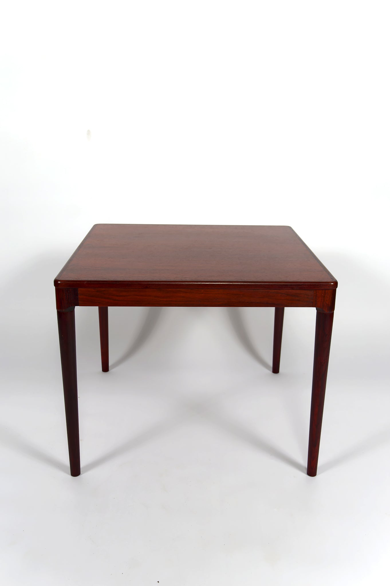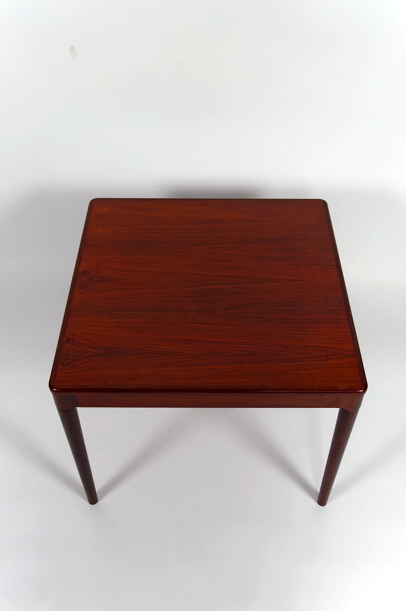 Reposant sur quatre pieds fuselés finement travaillés, cette table exprime toute la maîtrise formelle du modernisme scandinave : lignes pures, légèreté visuelle, stabilité parfaite. Les assemblages, discrets et précis, témoignent d’un savoir-faire artisanal exigeant, propre aux meilleures productions nordiques danoises ou suédoises des années 1950–1960.