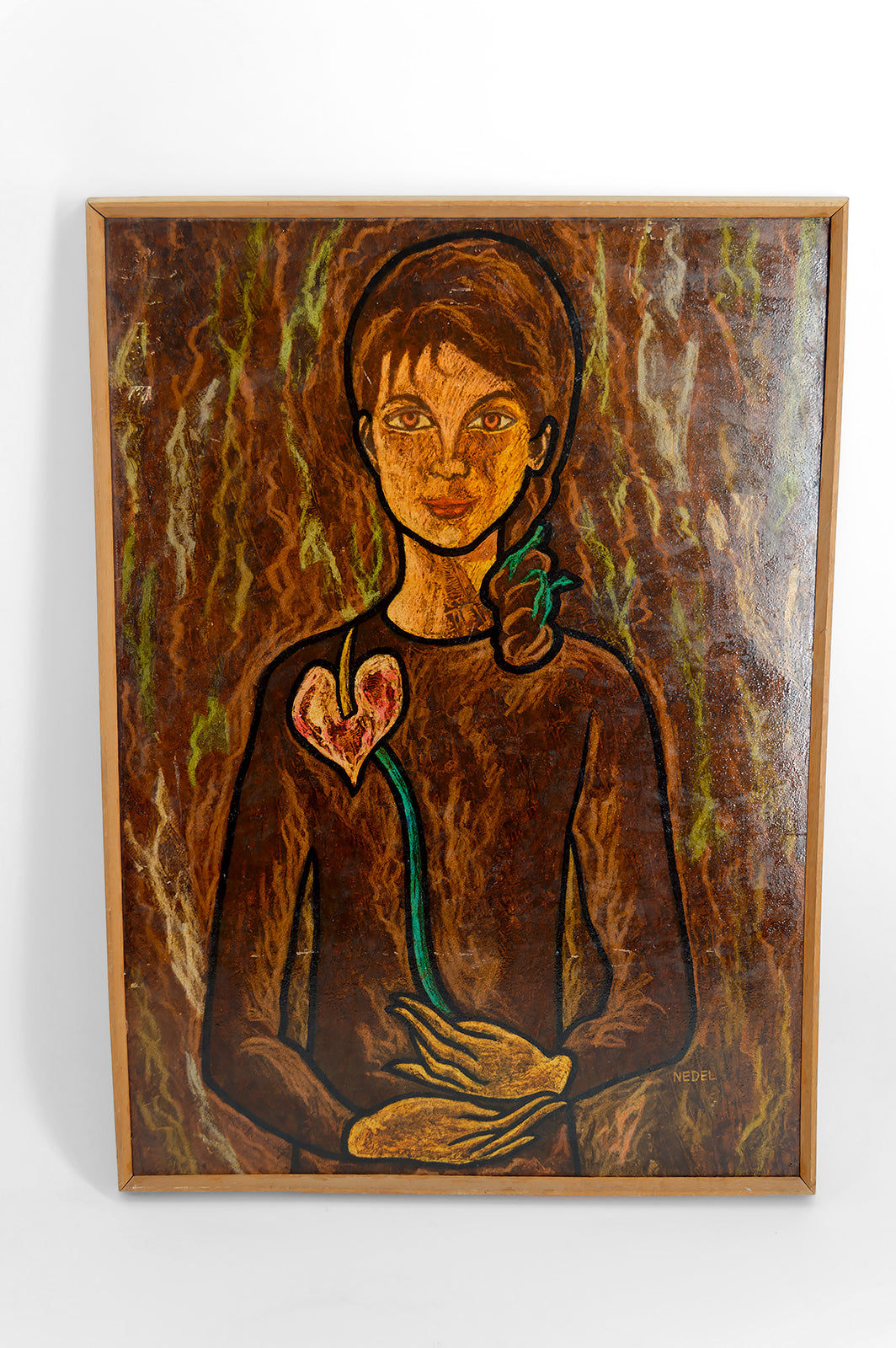 Cette œuvre rare et profondément évocatrice d’Aurel Nedel illustre avec justesse l’une des périodes les plus abouties de son parcours artistique, au début des années 1960. Le peintre y développe une figuration poétique et symbolique, à la frontière de l’expressionnisme et d’une forme de primitivisme moderne, caractéristique de la peinture roumaine de l’après-guerre.